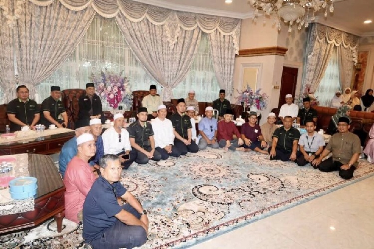 TUARAN: Ketua Menteri, Datuk Seri Panglima Hajiji Haji Noor dan isteri, Datin Seri Panglima Juliah Salag meluangkan masa menyantuni para jemaah haji dari daerah ini dalam satu majlis ringkas tetapi penuh bermakna di kediamannya di Kampung Serusup di sini hari ini.